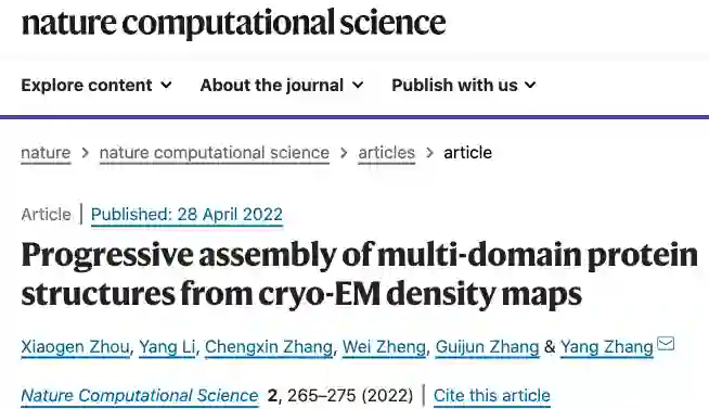 冷冻电子显微镜的进展为大分子蛋白质结构测定提供了潜力,但是在多域蛋白质的域间方向建模,成功率仍然很低。近日,Nature子刊,作者使用冷冻电子显微镜开发了自动的域增强建模(DEMO-EM)方法。D****EMO-EM方法通过结合刚体域拟合和柔性装配模拟(具有深度神经网络域间距离分布的灵活装配模拟)的渐进式结构精调程序,从冷冻电子显微镜图中组装多域蛋白结构。