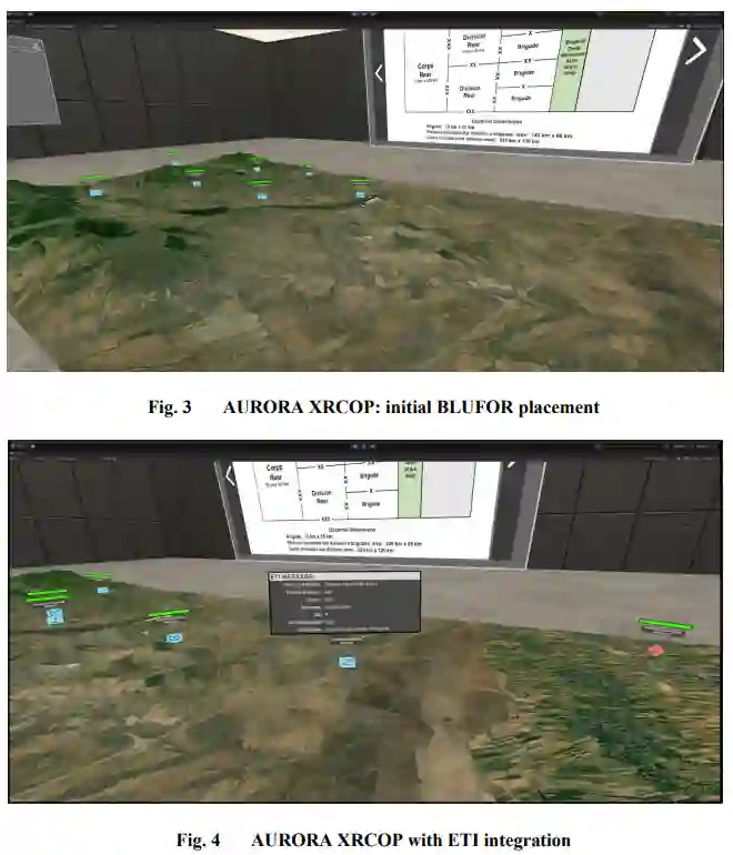 这项研究的目标是开发、整合和演示基于推理的决策框架。ETI 框架的决策建议被用于师演习训练和审查系统(DXTRS)中的模拟场景,并在 XR 环境 AURORA 中实现可视化。下文将介绍 DXTRS、场景和 AURORA 可视化的背景情况。