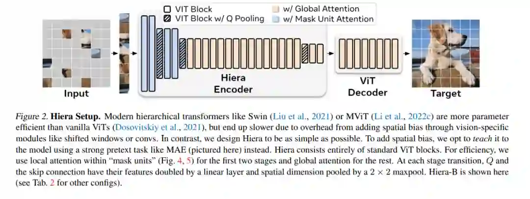 现代的分层视觉Transformer已经添加了几个专门针对视觉的组件,以追求监督分类的性能。虽然这些组件带来了有效的精确度和吸引人的FLOP计数,但增加的复杂性实际上使这些Transformer比其原生ViT(Vision Transformer)对应物更慢。在本文中,我们认为这种额外的复杂性是不必要的。通过使用强大的视觉前提任务(MAE)进行预训练,我们可以从最先进的多阶段视觉Transformer中去除所有的附加功能,而不会损失精确度。在此过程中,我们创建了Hiera,一种极其简单的分层视觉Transformer,比以前的模型更精确,同时在推断和训练过程中也更快。我们在图像和视频识别的各种任务上评估了Hiera。我们的代码和模型可以在https://github.com/facebookresearch/hiera 上找到。