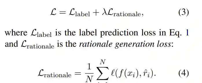 本文首先描述了当前学习特定任务模型的框架。有了这个框架,我们对其进行了扩展,以将基本原理纳入训练过程。形式上,我们将数据集表示为D = {(xi, yi)} N i=1,其中每个xi表示一个输入,yi是相应的所需输出标签。虽然所提出框架支持任何模态的输入和输出,但实验将x和y限制为自然语言。这个文本到文本框架(Raffel等人,2020)包含各种自然语言处理任务:分类、自然语言推理、问题回答等。 训练特定任务模型的最常见做法是使用监督数据对预训练模型进行微调(Howard和Ruder, 2018)。在没有人工标注标签的情况下,特定任务的蒸馏(Hinton等人,2015;Tang et al., 2019)使用LLM教师生成伪噪声训练标签,yˆi代替yi (Wang et al., 2021;Smith等人,2022a;Arora等人,2022年)。 在这项工作中,我们没有将rationales作为额外的模型输入,而是将学习rationales视为一个多任务问题。具体来说,我们训练模型 f(xi) → (ˆyi, rˆi),不仅预测任务标签,还根据文本输入生成相应的rationales。