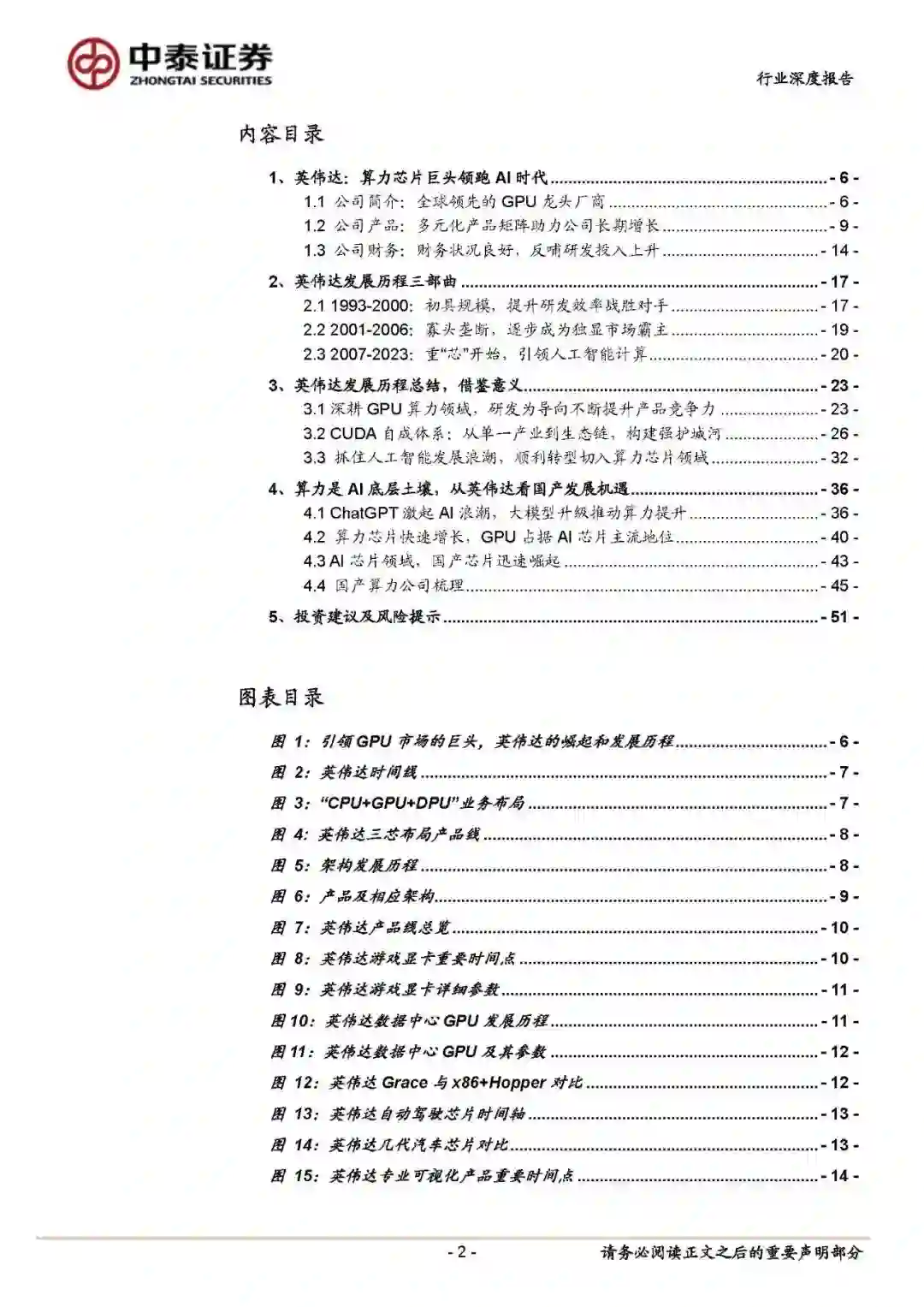 研发为底、生态为径、AI为翼:研发实力是一家芯片设计公司的核心竞争力,英伟达从发展初期即重视研发生产力,以高投入换去高回报不断提升产品竞争力。2005年,AMD的研发费用为11亿美元,是英伟达的3.2倍左右,而到了2022年,英伟达的研发费用达到了73.4亿美元,是AMD的1.47倍。随着研发投入的不断增长,英伟达通过技术进步降低成本和产品价格,不断推出新的产品吸引更多消费者,优势逐渐凸显;生态方面,英伟达推出CUDA平台,使得利用GPU来训练神经网络等高算力模型的难度大大降低,将GPU的应用从3D游戏和图像处理拓展到科学计算、大数据处理、机器学习等领域,这一生态系统的建立让很多开发者依赖于CUDA,进一步增加了英伟达的竞争壁垒;AI方面,人工智能的发展为GPU带来更大增长空间,英伟达抓住下游发展新机遇,推出AI加速卡,伴随以ChatGPT为代表的生成式AI大模型发展进入快速增长通道。