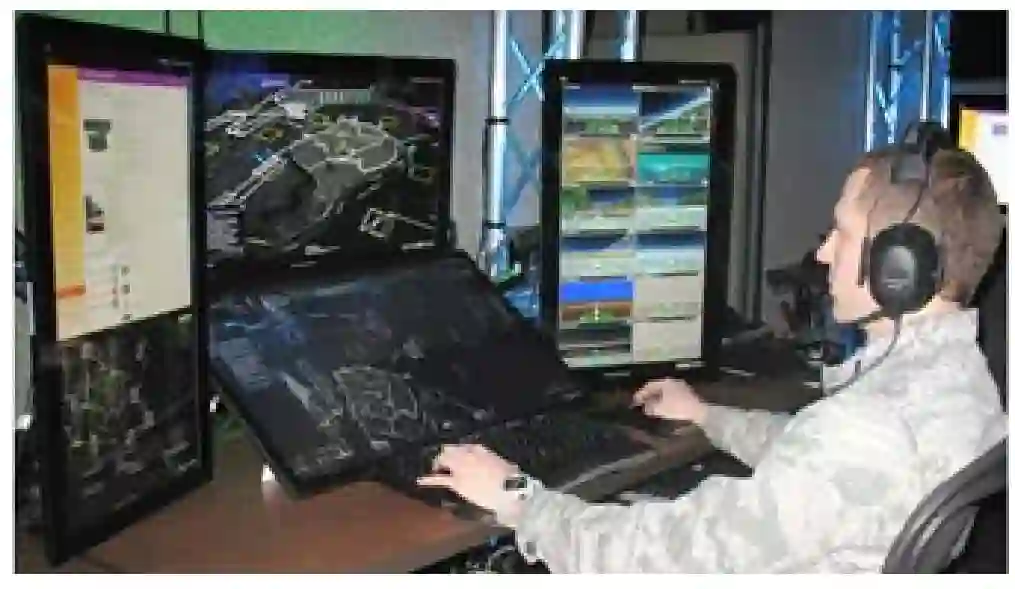 IMPACT 的显示屏和控制装置(图 2)采用受视频游戏启发而设计的图形图标,以简洁、综合的方式呈现信息,便于检索多个系统的状态/目标/进度,并支持直接感知和操作原则。多模式控制(语音、触摸和鼠标)增强了 “剧本”委托架构,实现了控制状态之间的无缝转换(从手动到完全自主)。通过这种可适应的自动化方案,操作员保留了权力和决策责任,有助于避免 “自动化意外”。通过支持一系列互动,灵活的操作员-自动驾驶团队合作在应对动态任务环境时实现了灵活性。在一个极端,操作员可以手动控制 UxV 的移动,或从头开始构建游戏,指定详细参数。在另一个极端,操作员只需指定游戏类型和位置,智能体就能确定所有其他参数,从而快速为一个或多个 UxV 分配任务。例如,当 IMPACT 操作员呼叫执行任务以实现对建筑物的空中监视时,智能体会推荐使用的 UxV(基于预计在途时间(ETE)、燃料使用、环境条件等),合作控制算法会提供到达建筑物的最短路线(考虑到禁飞区等),自主框架会监控执行任务的持续状态(例如,如果 UxV 无法按时到达建筑物,就会发出警报)。IMPACT 的任务调用界面还便于操作员与智能体就任务细节进行交流,以优化任务参数(如目标大小和当前能见度),并支持操作员/自主系统态势共享(如显示与智能体生成的多个任务参数相关的行动方案的权衡)。游戏进度通过矩阵显示进行描述,反映了自主监控情况,而表格界面则有助于游戏管理(例如,跨游戏的资产分配)。有关所有游戏相关界面的更多详情,请参阅《Calhoun, Ruff, Behymer, & Mersch, 2017》。