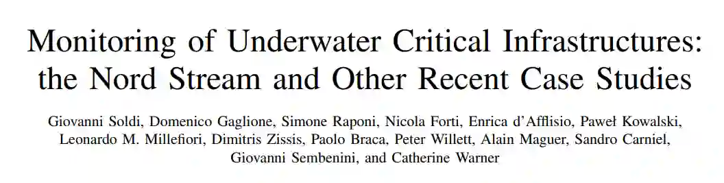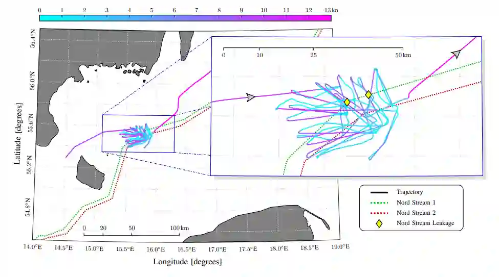 北溪河事件使人们注意到天然气管道和水下电缆等水下关键基础设施(UCIs)的脆弱性。这导致公众和政策制定者更加关注提高这些重要资产的复原力,因为人们越来越担心未来会发生类似的恶意行动。事实上,最近,在2022年12月22日,意大利报纸报道了[3]一艘大型船只在亚得里亚海跨亚得里亚海管道(TAP)附近的可疑活动。因此,对UCI的保护和监视是未来任何海事战略中的关键因素。