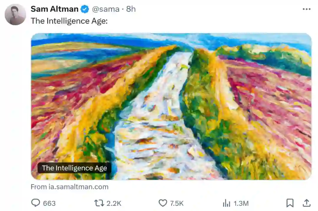 今天凌晨,OpenAI CEO 奥特曼罕见地发表了一篇长文博客,标题为《智能时代》(The Intelligence Age)。推特浏览量已经突破了 100 万。