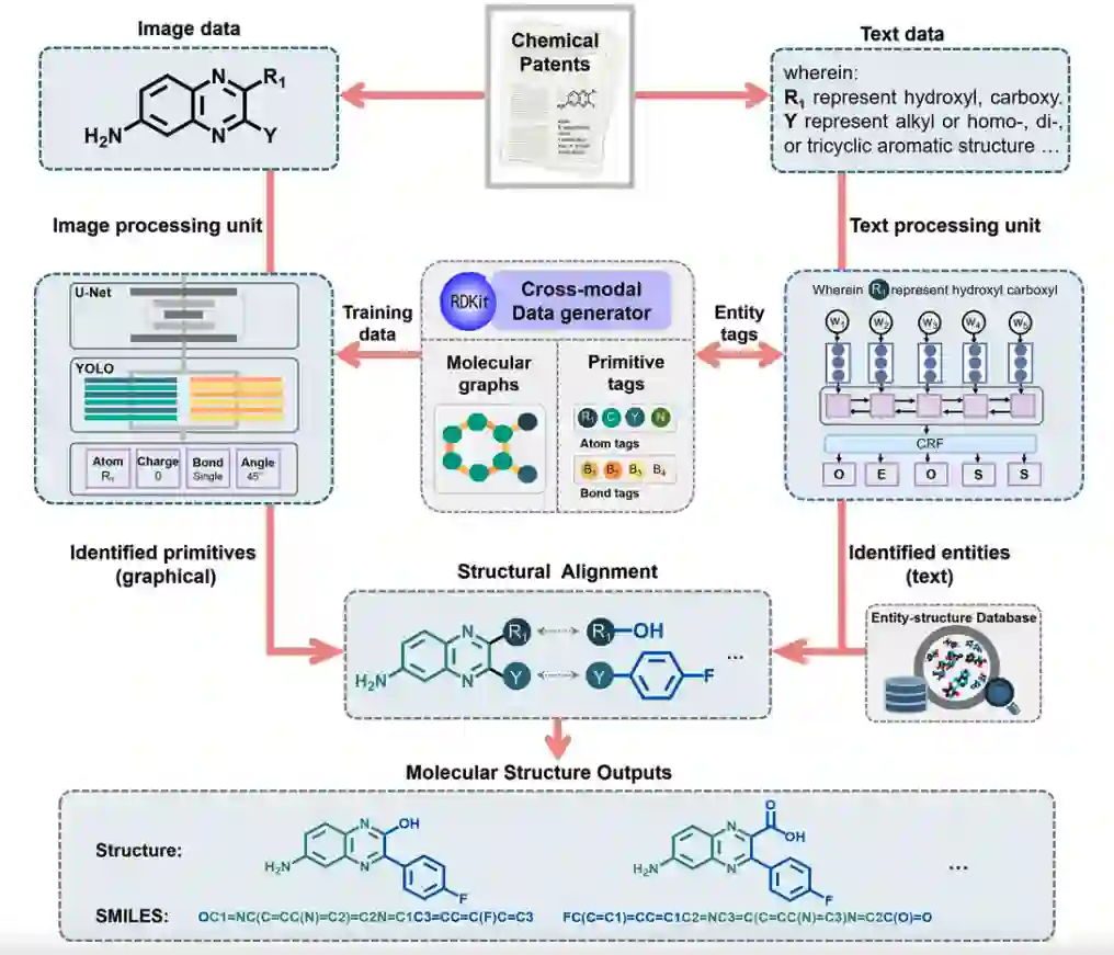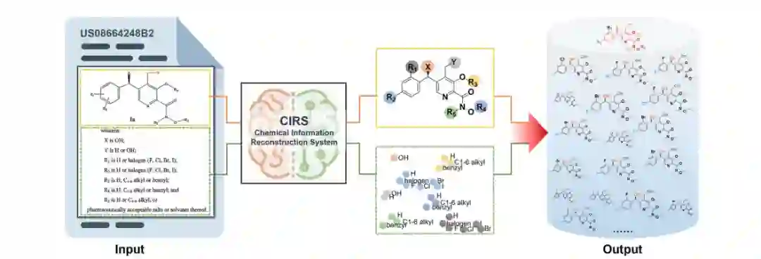 作者提出一个多模态化学信息重构系统CIRS,能自动处理、提取、对齐文本和图像的信息,可以有效地构建对药物发现有用且可扩展的分子结构以填充近药物空间。