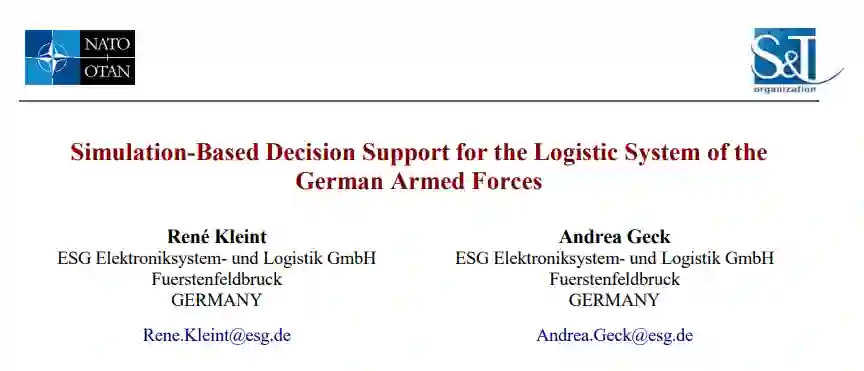 建模和仿真有助于德国武装部队后勤的数字化,必须提供灵活性和稳健性等因素,以识别后勤链中的风险和弱点。 ESG,作为一家拥有多年军事经验的德国军事技术公司,我们展示了成功的仿真和分析项目(例如,“以欧洲战斗机为例,预测德国空军的作战能力”或“基于仿真的医疗救援链分析”),并提出进一步的行动方向,例如基于仿真的分析,以优化军事供应链中的加法生产或自主系统的最佳概念。通过对军事供应链使用后勤仿真,可以检查和优化其稳健性和可持续性。这种基于数据的决策支持方法(工具 AnyLogic,德国联邦国防军基于仿真的分析指南和模型档案)。它聚焦于一个关键问题,例如“在某些参数/因素/影响下,系统的材料运行准备情况如何更高概率的为在未来发展,以及什么可以提高系统的性能?”如本讲座所述那样提供各种优势。