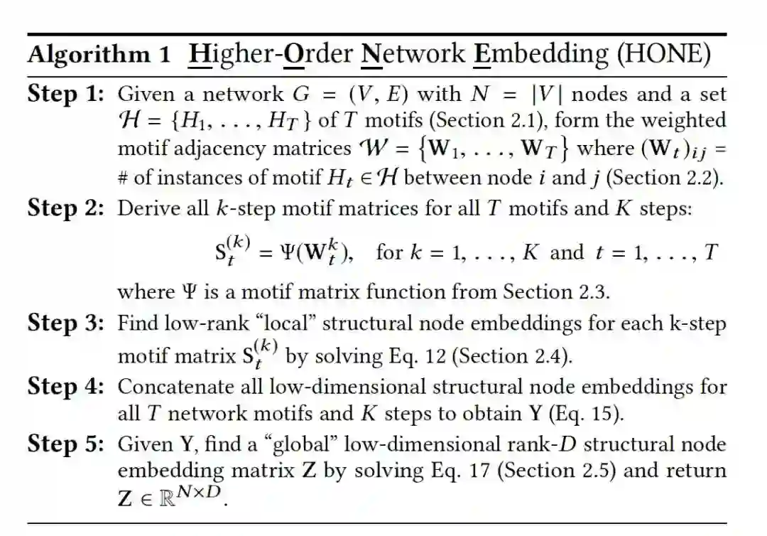 摘要:许多基于图的机器学习任务的成功在很大程度上取决于从图数据中学习到的适当表示。大多数工作都集中在于学习保留邻近性的节点嵌入,而不是保留节点之间结构相似性的基于结构的嵌入。这些方法无法捕获对基于结构的应用程序(如web日志中的visitor stitching)至关重要的高阶结构依赖和连接模式。在这项工作中,我们阐述了高阶网络表示学习,并提出了一个称为HONE的通用框架,用于通过节点邻域中的子图模式(network motifs, graphlet orbits/positions)从网络中学习这种结构性节点嵌入。HONE引入了一种通用的diffusion机制和一种节省空间的方法,该方法避免了使用k-step线性算子来显式构造k-step motif-based矩阵。此外,HONE被证明是快速和有效的,最坏情况下的时间复杂度几乎是线性的。实验结果表明,该算法能有效地处理大量的网络日志数据,包括链接预测和visitor stitching。