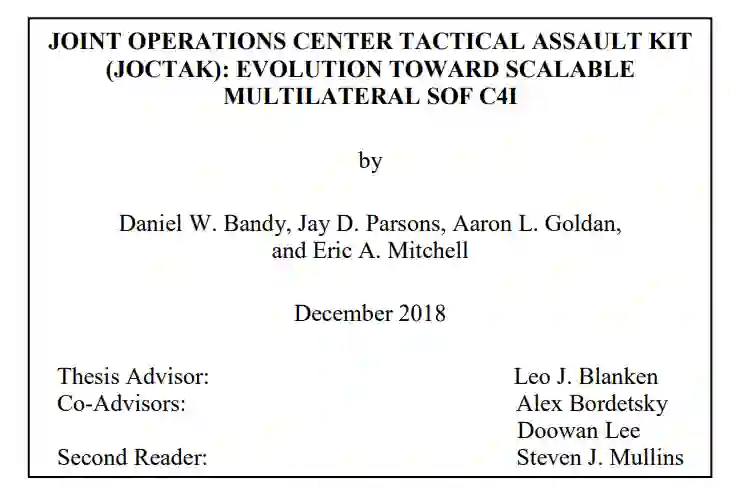 第二章回顾了重要的背景信息、指导条令以及对 TAK 及其以往使用情况的熟悉。第三章讨论了 TAK 系统作为大规模杀伤性武器 C4I 系统的应用,包括一系列小故事,说明其对战术级作战人员和作战级指挥的附加价值。第四章详细介绍了为确定 ATAK 系统的能力差距而进行的迭代实验过程,以确定在联合作战中心开发和扩大 TAK 的使用范围需要做些什么。第四章还包含对开发 JOCTAK 的建议。第五章是结论,讨论了在大规模杀伤性武器联合信息与制造 C4I 解决方案总体框架下有关研究问题的发现。