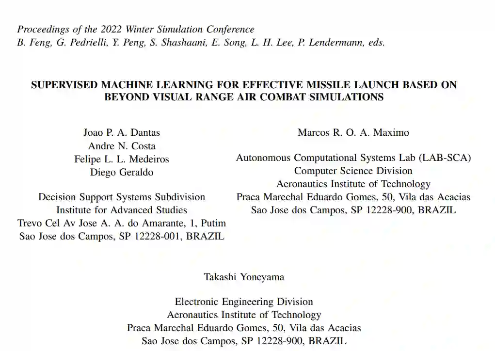 这项工作使用来自建设性模拟的可靠数据,比较了有监督的机器学习方法,以估计空战中发射导弹的最有效时刻。我们采用了重采样技术来改进预测模型,分析了准确度、精确度、召回率和f1-score。事实上,我们可以发现基于决策树的模型性能卓越,而其他算法对重采样技术非常敏感。在未使用重采样技术和使用重采样技术的情况下,最佳f1-score模型的值分别为0.378和0.463,提高了22.49%。因此,如果需要,重采样技术可以提高模型的召回率和f1-score,但准确率和精确度会略有下降。此外,通过创建基于机器学习模型的决策支持工具,有可能提高飞行员在空战中的表现,这有助于提高攻击任务命中特定目标的有效性。