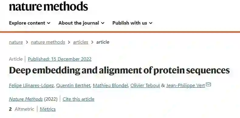 这次为大家报道的是nature methods 上一篇题为” Deep embedding and alignment of protein sequences” 的文章,来自法国巴黎Google Research的Brain Team团队。
