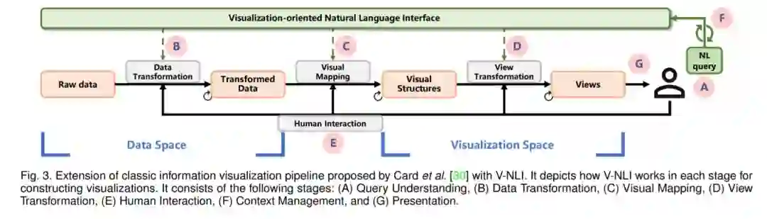 利用面向可视化的自然语言界面(V-NLI)作为直接操作可视化分析的补充输入方式,可以提供吸引人的用户体验。它使用户能够专注于他们的任务,而不是担心操作可视化工具的界面。在过去的二十年中,特别是最近几年,利用先进的自然语言处理技术,许多V-NLI系统在学术研究和商业软件中得到了开发。在本文中,我们对现有的V-NLIs进行了全面的回顾。为了对每篇论文进行分类,我们在经典的信息可视化管道的基础上,扩展了V-NLI层,开发了分类维度。使用了以下七个阶段: 查询理解、数据转换、可视化映射、视图转换、人工交互、上下文管理和表示。最后,我们还阐明了未来社区工作的几个有前途的方向。