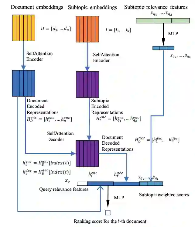 论文概述:搜索结果多样化的目标是使得检索得到的结果能够尽量覆盖用户提出问题的所有子话题。已有的多样化排序方法通常基于贪心选择(Greedy Selection)过程,独立地将每一个候选文档与已选中的文档序列进行比较,选择每一个排序位置的最佳文档,生成最后的文档排序。而相关研究证明由于各候选文档的边际信息收益并非彼此独立,贪心选择得到的各个局部最优解将难以导向全局最佳排序。本文介绍了一种基于自注意力网络(Self-Attention Network)的方法,可以同步地衡量全体候选文档间的关系,以及候选文档对不同用户意图的覆盖程度,有效地克服原有方法受限于贪心选择过程的局限性,并在TRECWebTrack09-12数据集上获得更好的性能。