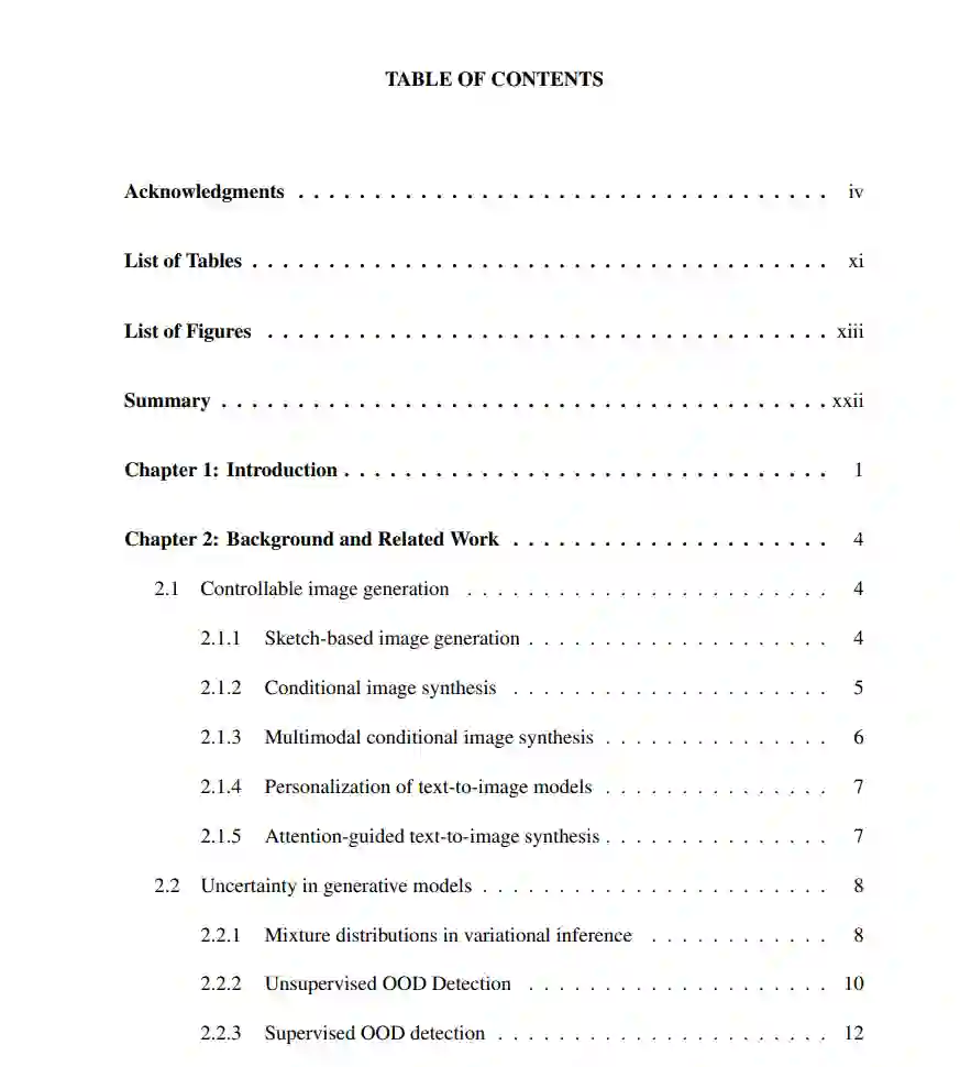 在第8章中,我们总结了这篇论文的贡献,并讨论了可控图像合成和生成模型中不确定性的潜在未来方向。