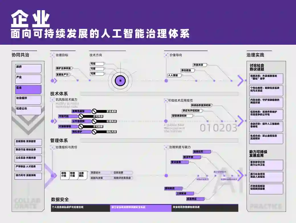 全球已经形成了大量的人工智能治理与发展原则,下一步的工作重点,是将抽象的原则落实到实践中。企业作为人工智能技术研发和应用的重要力量,亟需探索一套适合自身业务发展的人工智能治理实践体系,将各项治理要求贯彻到人工智能的全生命周期,以有效治理为人工智能红利的释放奠定基础,从而加速推动可持续发展 愿景的实现。