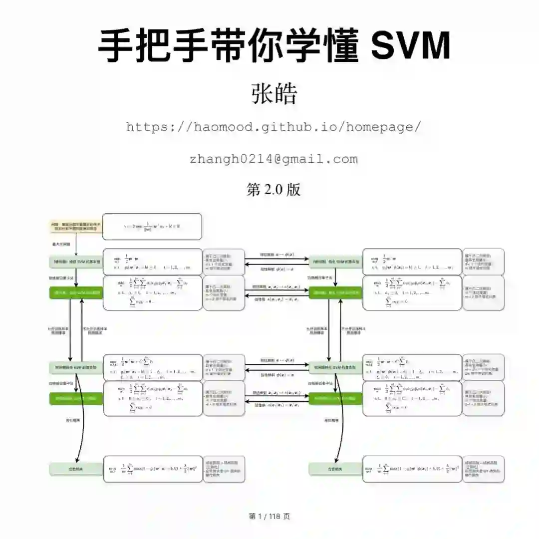 本书从零推导 SVM,涵盖从 SVM 的思想、到形式化、再简化、最后实现的完整过程。