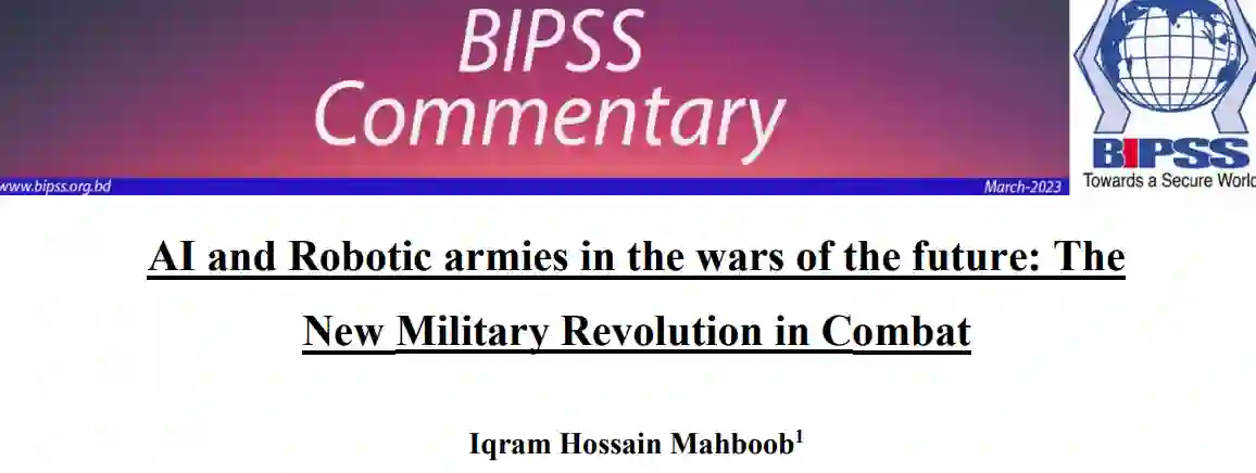“现代科学赋予了人类运动,却夺走了人类的情感"。这是 20 世纪 40 年代孟加拉 “旅行 ”作家比诺伊-穆克波帕达伊说过的一句话。时隔近 100 年,现在才知道这句话的精髓。随着科学的不断进化和发明,人类的思想正处于被改变的边缘。机器人、人工智能(AI)、自动化机器和其他自我调节的机构都是现代科学的奇迹。如果机器人征服了人力资源,那么世俗活动也必将因缺乏共鸣而获得动力。战争不仅是两个或更多势力之间的战斗。政府、政治、平民、和平、人权、安全、经济等其他因素都与战争息息相关。只有人脑才能对发动战争的所有这些因素做出正确的判断和论证。人工智能和机器人只能通过编程和某些输入来运行。在战争中,这些机器人陆军无法像人类士兵那样明辨是非。在未来,使用人工智能和机器人军队的国家肯定会在彼此间占据上风,但持久的安全性仍然是个问题。这篇评论将给读者带来以下启迪:作战机器人的需求,使用人工智能和机器人的战争战术和影响,在战争中使用机器人的战略收益,自动化军队参与的挑战和风险,最后是不同国家在开创少人战争中的计划和准备。