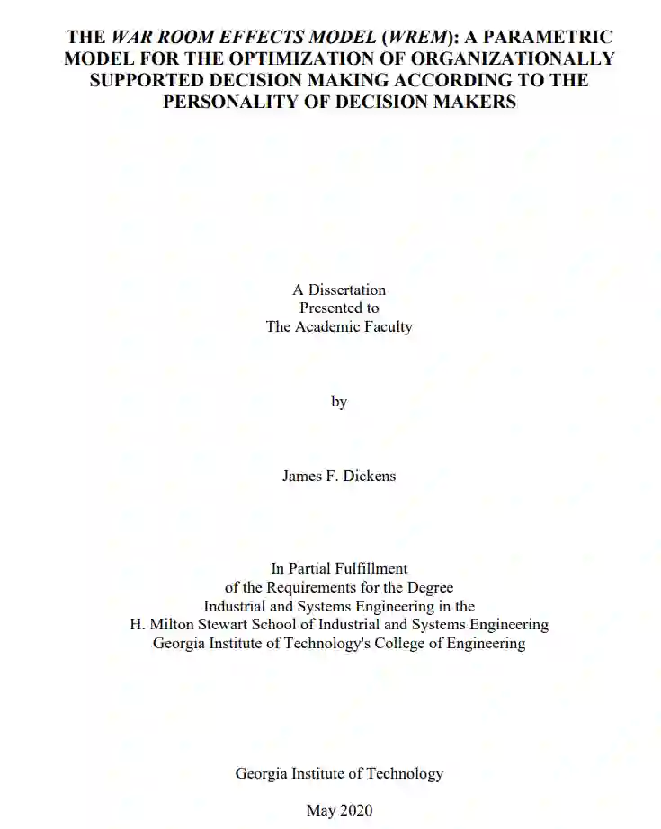 WREM 是一个参数模型,代表了与人、情境、唤醒、情感和绩效相关的既有模型和理论的整合,为判断和决策的可变性提供了新的见解。该模型估计了人格和情境因素(即 “作战室效应”)对决策者认知表现的动态交互影响。通过与之配套的情境控制系统,WREM 可以根据决策者的个性优化决策质量。