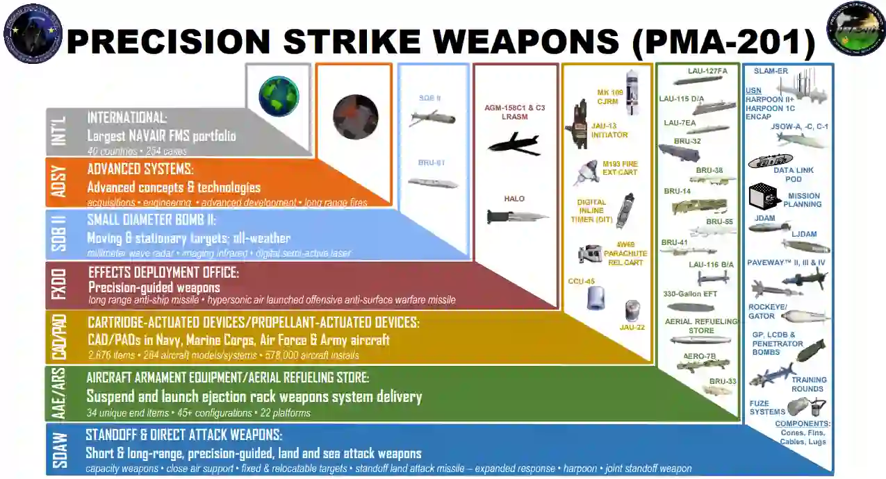美NAVAIR海军航空系统司令部无人航空和打击武器项目执行办公室(PEO(U&W))包括12个项目办公室,其任务是设计、建造、交付和维护海军的无人飞机、武器、目标、机组系统和通用支持设备。PEO为世界各地的水兵和海军陆战队提供最先进的作战能力。