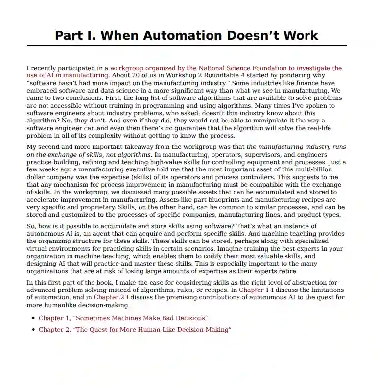 自动化、自主和人类决策的区别和局限性 自主AI在实时决策方面的独特优势,具有用例 如何从模块化组件设计一个自主的AI并记录你的设计