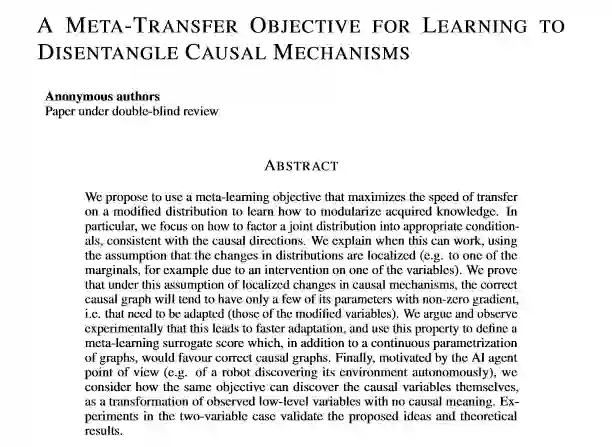 题目: A Meta-Transfer Objective for Learning to Disentangle Causal Mechanisms