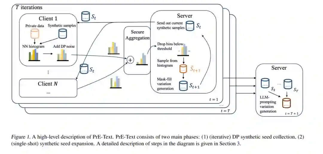 设备上的训练是目前在私人、分布式用户数据上训练机器学习(ML)模型的最常见方法。尽管如此,设备上的训练存在几个缺点:(1)大多数用户设备太小,无法在设备上训练大型模型,(2)设备上的训练对通信和计算资源需求很高,(3)设备上的训练难以调试和部署。为了解决这些问题,我们提出了Private Evolution-Text(PrE-Text),一种生成差分隐私(DP)合成文本数据的方法。首先,我们展示了在多个数据集上,使用PrE-Text合成数据训练的小模型(适合在用户设备上运行的模型)在实际隐私制度下(ϵ = 1.29,ϵ = 7.58)优于在设备上训练的小模型。我们在使用9倍更少的轮次、每轮次6倍更少的客户端计算和每轮次100倍更少的通信的情况下实现了这些结果。其次,在PrE-Text的DP合成数据上微调大型模型提高了大型语言模型(LLM)在相同隐私预算范围内的私人数据上的性能。总而言之,这些结果表明,在DP合成数据上训练可以比在设备上对私人分布式数据进行模型训练更优。