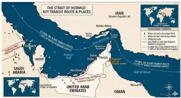 图1:霍尔木兹海峡:关键运输路线与地点