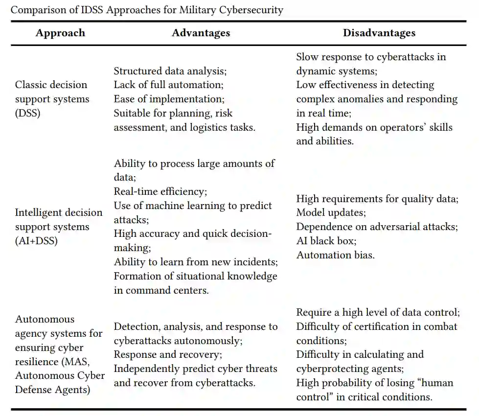 本文提出了一种全面的智能决策支持系统模型,旨在网络威胁的动态条件下确保军事信息系统的网络弹性。研究对有关提高信息系统内网络威胁检测与预测效能的方法和模型,以及确保这些系统网络弹性的可能方法之科学文献进行了分析。明确了现有解决方案的优点与缺点,并对三种主要方法进行了比较分析,这些方法包括经典决策支持系统、智能决策支持系统以及用于确保网络弹性的自主智能体系统(多智能体系统、自主网络防御智能体)。所提出的架构基于数学突变论来描述系统稳定性的非线性动力学并预测SIEM模块数据流中的关键转换,基于聚类分析方法(即k-Means算法)对从稳定到临界的安全状态运行模式进行分类,从而能够识别可能导致系统发生灾难性变化的异常。采用统计和时间方法来预测作为SIEM模块不稳定指标的分岔点。还采用了多目标优化方法,该方法反映了系统的决策支持系统组件,并负责基于最小化风险、时间和成本的指标做出决策。该系统架构通过活动图、状态图和序列图进行呈现。
