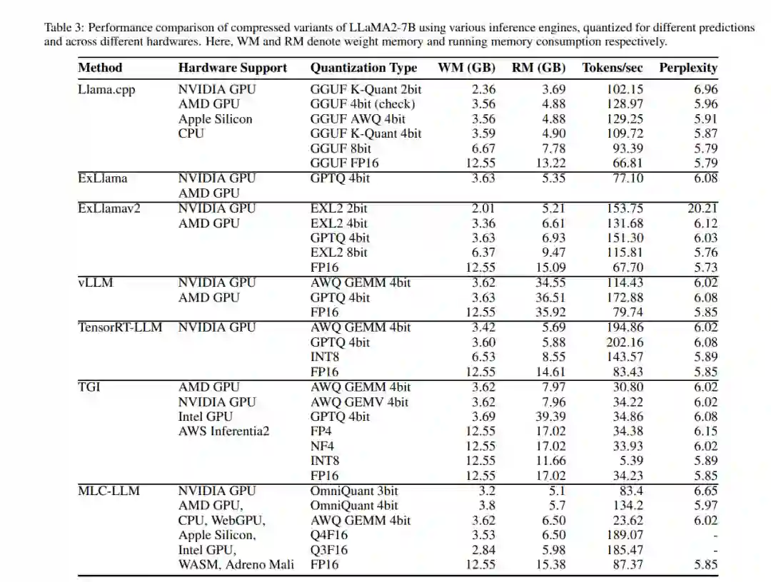 为了提供一个实践视角,我们对在标准化设置下的LLMs的知名压缩方法进行了实证分析。从中得到的洞察可以帮助根据部署环境做出有关选择LLM压缩方法的明智决定。