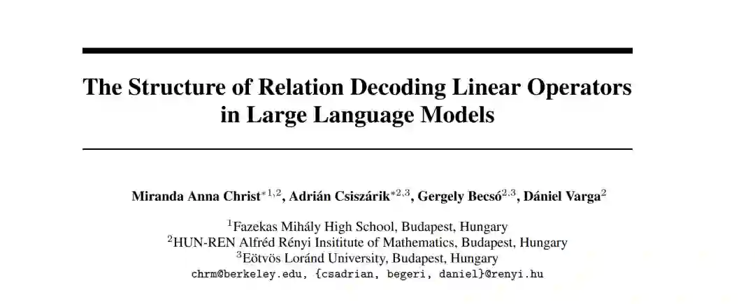 本文研究了 Hernandez 等人(2023) 所提出的、能够在 Transformer 语言模型中解码特定关系事实(relational facts)的线性算子(linear operators)的结构特征。我们将其原本针对单一关系的研究扩展至多种关系的集合,并系统性地描绘了这些线性算子的组织结构。 研究表明,这类关系解码算子集合可以通过简单的三阶张量网络(order-3 tensor networks)进行高度压缩,而几乎不损失解码精度。为解释这种出人意料的冗余性(redundancy),我们提出了一种交叉评估协议(cross-evaluation protocol):将每个线性解码算子应用于其他关系的主语(subject),以考察它们的泛化与重叠性。 实验结果显示,这些线性映射并非分别编码了彼此独立的关系,而是提取出反复出现的、较为粗粒度的语义属性(coarse-grained semantic properties)。例如,“首都所在国家(country of capital city)”与“食物所属国家(country of food)”都属于同一类更一般的“国家归属(country-of-X)”属性。 这种以属性为中心(property-centric)的结构不仅解释了这些算子的可压缩性,也揭示了它们仅能泛化到语义上相近的新关系的原因。因此,我们的研究指出,在 Transformer 语言模型中,**线性关系解码机制主要基于属性(property-based)而非特定关系(relation-specific)**的结构原理。