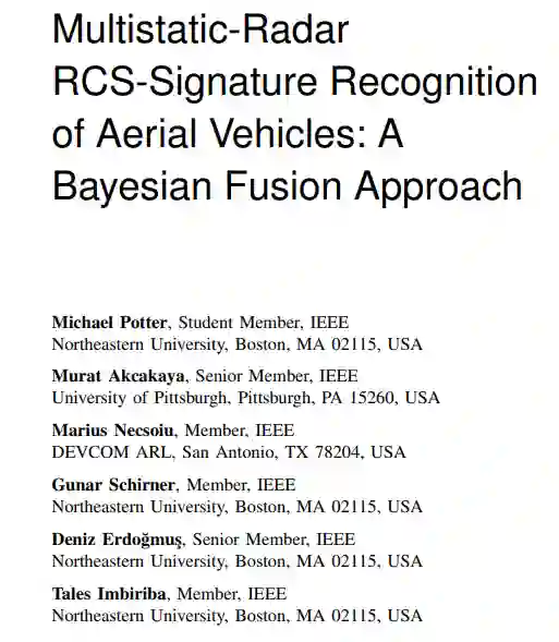 为了评估所提出的方法,我们模拟了七架无人机的随机行走轨迹,并将目标的纵横角与在消声室中获取的雷达截面(RCS)测量值相对应。然后,我们比较了单雷达自动目标识别 (ATR) 系统和次优融合方法与 OBF 方法的性能。经验表明,与 RBC 相结合的 OBF 方法在分类准确性方面明显优于其他融合方法和单一雷达配置。