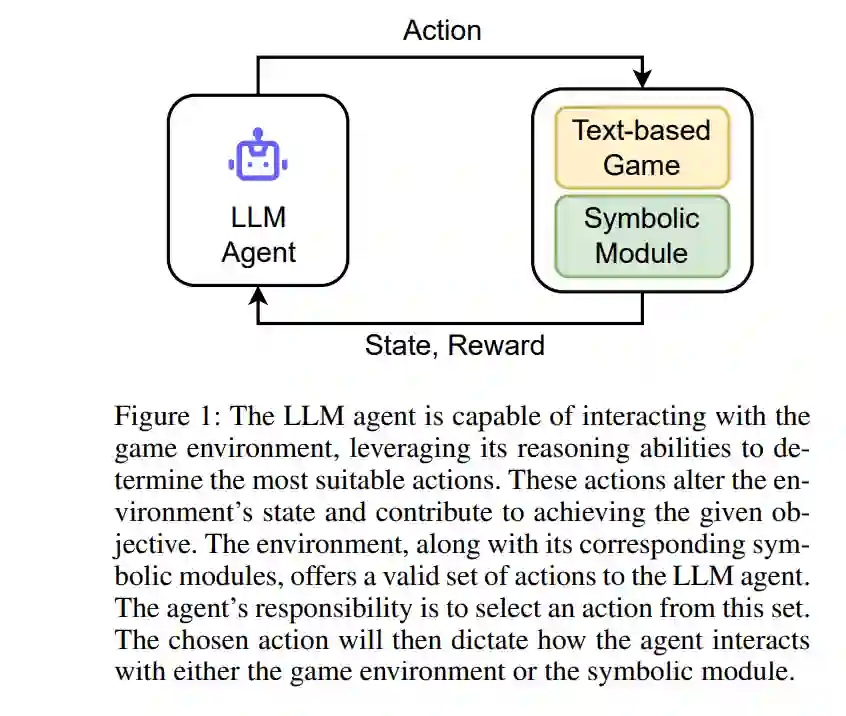 广泛的现实世界应用以其符号性质为特征,需要强大的符号推理能力。本文研究了大型语言模型(LLMs)作为符号推理器的潜在应用。我们关注基于文本的游戏,这是自然语言能力智能体的重要基准,尤其是在数学、地图阅读、排序以及在基于文本的世界中应用常识等符号任务方面。为了帮助这些智能体,我们提出了一个旨在解决符号挑战并实现游戏目标的LLM智能体。我们首先初始化LLM智能体并告知其角色。然后,智能体接收来自基于文本游戏的观察和一组有效操作,以及特定的符号模块。有了这些输入,LLM智能体选择一个操作并与游戏环境互动。我们的实验结果表明,我们的方法显著增强了LLMs作为自动符号推理智能体的能力,我们的LLM智能体在涉及符号任务的基于文本的游戏中表现出色,平均性能达到88%。