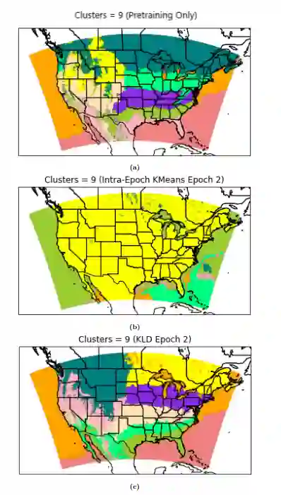 这项研究以几种方式增加了深度学习和大气/气候建模领域。首先,使用一种强大的新型聚类算法,在此称为深度表示聚类 (DRC),将美国聚类到在时间序列形状和气象动态方面具有相似性的地理区域。其次,将解决当前对 DRC 研究的空白。具体来说,据我们所知,还没有发布任何时间序列特定的 DRC 算法。相反,在处理时间序列数据时,大多数人在其聚类算法的核心使用基于欧几里德的距离度量,这可能会产生不良结果。最后,探讨了在深度学习模型中利用已知物理定律进行 24 小时气象预报的前景。