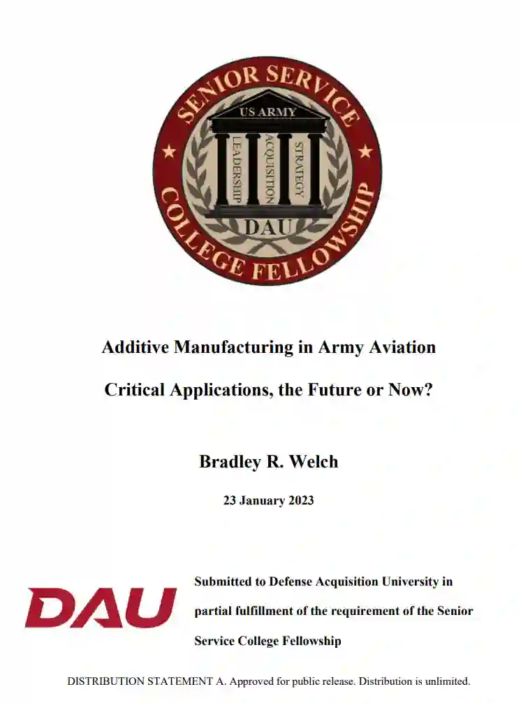 美国防部增材制造战略(2021年)和陆军指令2019-29(2019年)(通过先进制造业实现战备和现代化)表明,军方正在努力将增材制造融入军事系统。这项定性研究的目的是探索增材制造技术的进展,以评估增材制造部件在陆军旋翼飞机上关键安全应用的可行性。本研究概述了陆军飞机关键安全项目的鉴定过程,回顾了美国防部和陆军的增材制造政策,详细解释了粉床聚变和定向能处置增材制造工艺,并回顾了一个案例研究。增材制造技术需要严格的材料和工艺控制,以及重要的鉴定检查和测试,以支持陆军航空的关键安全应用。然而,增材制造技术已经成熟,现在该技术已经准备好为关键应用生产高质量的复杂旋转翼零件。