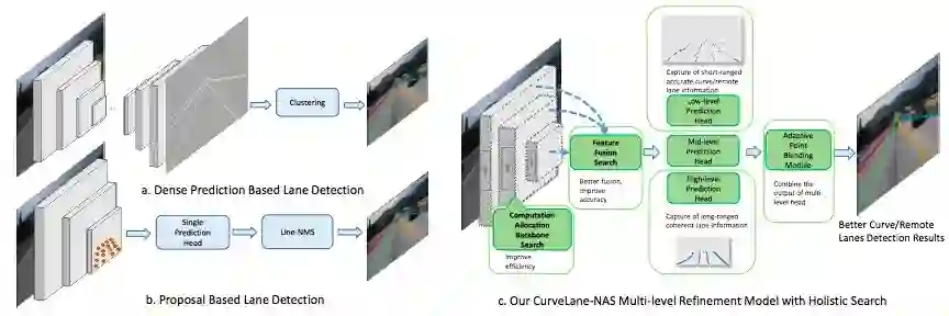 车道线作为路面最主要的指示信息之一,对于自动驾驶系统中路径规划、车道保持等功能的具有至关重要的参考价值。实时准确地检测出路面的车道线,在自动驾驶领域受到广泛重视,在科研领域研究活跃。随着深度学习的发展,基于深度学习的车道线检测模型能够处理的情况越来越多,随之而来的代价就是模型越来越大,计算量越来越大,检测时间越来越长,对硬件要求越来越高。CurveLane-NAS旨在解决现阶段车道线检测模型计算量大不适宜落地的问题而设计的一种端到端的车道线架构搜索框架,在CULane等公开数据集上实现了新的SOTA。