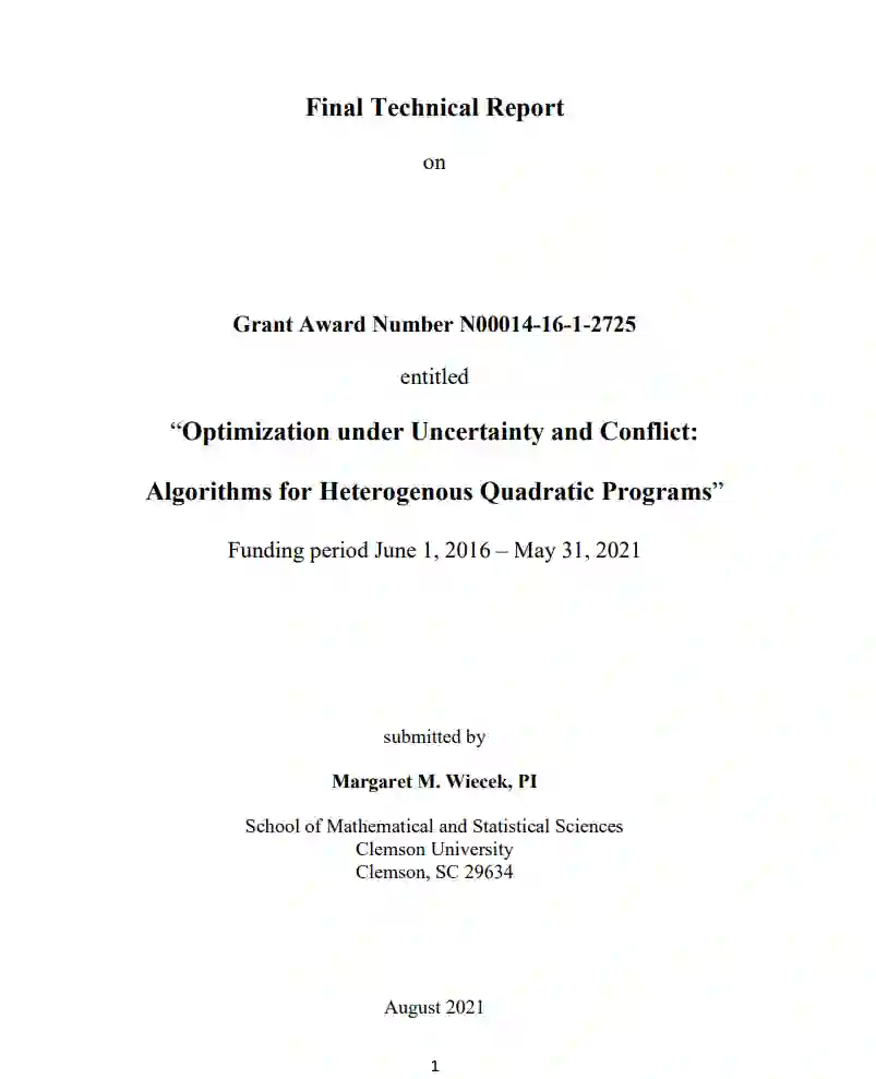 开发了二次规划(QPs)的理论和算法。QPs是用不同类型的变量(连续、整数或混合)以及目标和约束函数(凸、非凸)制定的。它们有单一或多个目标建模冲突,并可能携带两种类型的多个参数:一种类型是未知或不确定数据的模型,而另一种则是拟议方法的要求。理论结果包括强多面体松弛的推导和非凸二次函数的有效不等式,双线性函数的小尺寸松弛,以及凸化一般多项式函数的误差界限。为不同类型的QPs设计的算法依赖于一种基础算法,用于解决一般位置上具有充分矩阵和参数的多参数线性互补性问题。该算法似乎是第一个为这类问题提出的算法,并解决了以前未解决的参数处于一般位置的多参数问题,包括单目标和多目标、线性和凸二次规划。包括在投资组合优化和统计领域的应用。