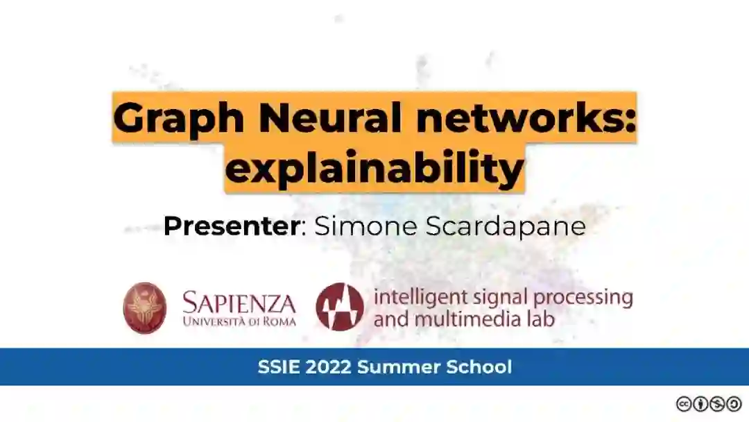 图神经网络(GNNs)已被广泛应用于图表示学习的各个领域。然而,与所有其他神经网络模型一样,GNN也存在黑盒问题,因为人们无法理解其机制。为了解决这一问题,人们提出了几种解释GNN决策的方法。在本报告中,Simone Scardapane概述了最先进的GNN解释方法和如何评估它们。