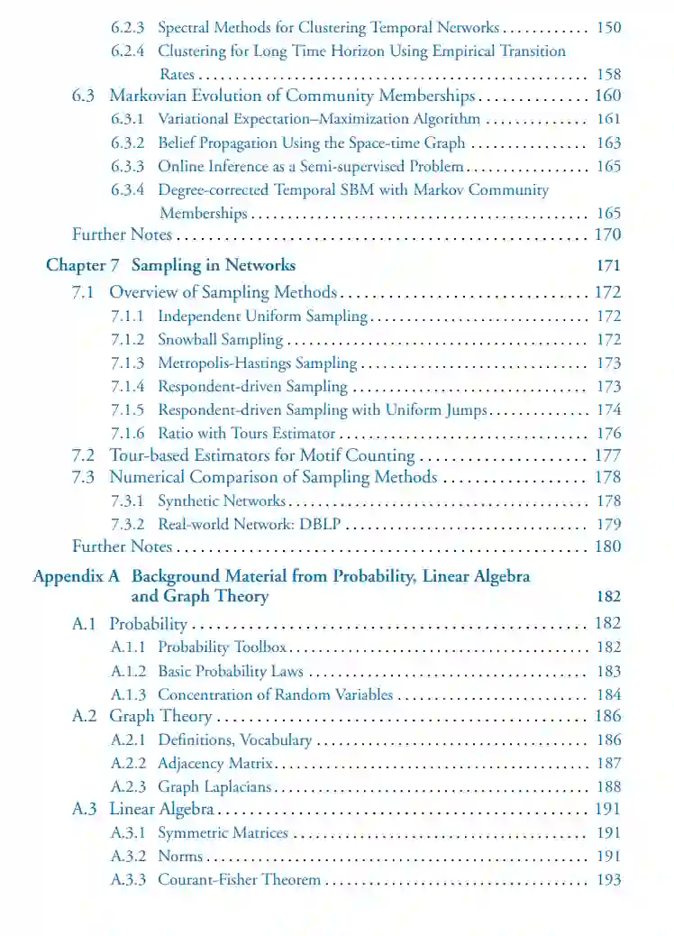 这本书是对网络统计分析的一般性介绍,既可以作为研究专著,也可以作为教材。书中介绍了许多用于网络分析的基本工具和概念,如网络建模、社区检测、基于图的半监督学习和网络中的抽样。这些概念的描述是自包含的,对所提到的算法既有理论证明,也提供了应用实例。从事网络科学、复杂网络分析或社交网络分析领域的研究人员(包括研究生)将在本书中找到与他们的研究任务相关的最新统计方法。本书还可以作为与统计方法分析复杂网络相关课程的教材。总的来说,各章节相对独立且自给自足,可供课程组成“自选式”。然而,第二章在某种程度上是本书各部分所需的基础。建议在阅读第五章和第六章之前阅读第四章,但这不是绝对必要的。在阅读第五章和第七章之前阅读第三章也会有所帮助。阅读本书的先决条件是具备概率、线性代数和图论基本概念的知识。为帮助读者进一步理解,已在附录中添加了上述学科所需概念的描述。
