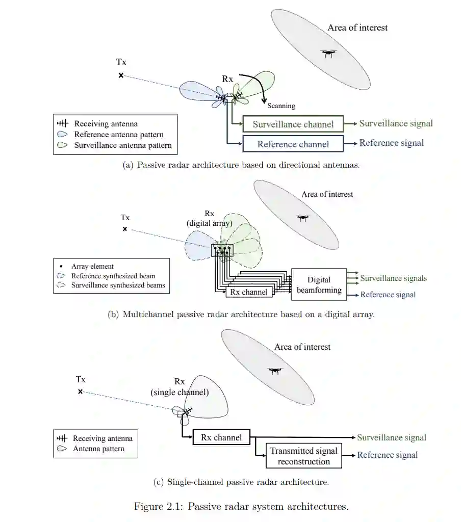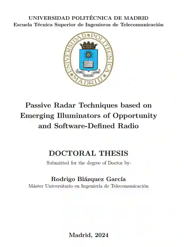 新型无线通信系统的部署,如新一代移动通信(即长期演进(LTE)和 5G)或低地轨道(LEO)通信卫星群(如 Starlink 或 OneWeb),为利用这些传输作为机会照明来开发具有增强功能的无源雷达提供了新的可能性。因此,本论文的重点是分析、开发和实验验证可利用这两种新兴照明设备的无源雷达技术: (i) LTE 移动通信系统,主要应用于城市或半城市地区;(ii) 新型宽带通信低地轨道卫星星座,如 Starlink 或 OneWeb,被认为对偏远地区的应用具有重大意义。此外,作为开发和验证无源雷达原型的有利技术,还考虑了新型商用现成(COTS)软件定义无线电(SRD)设备。
