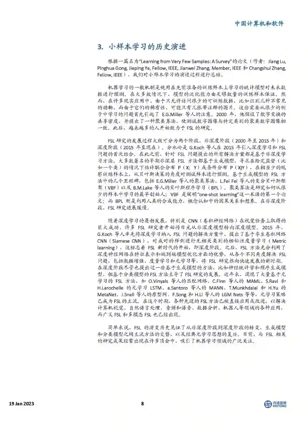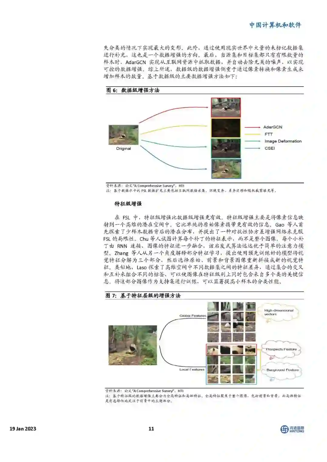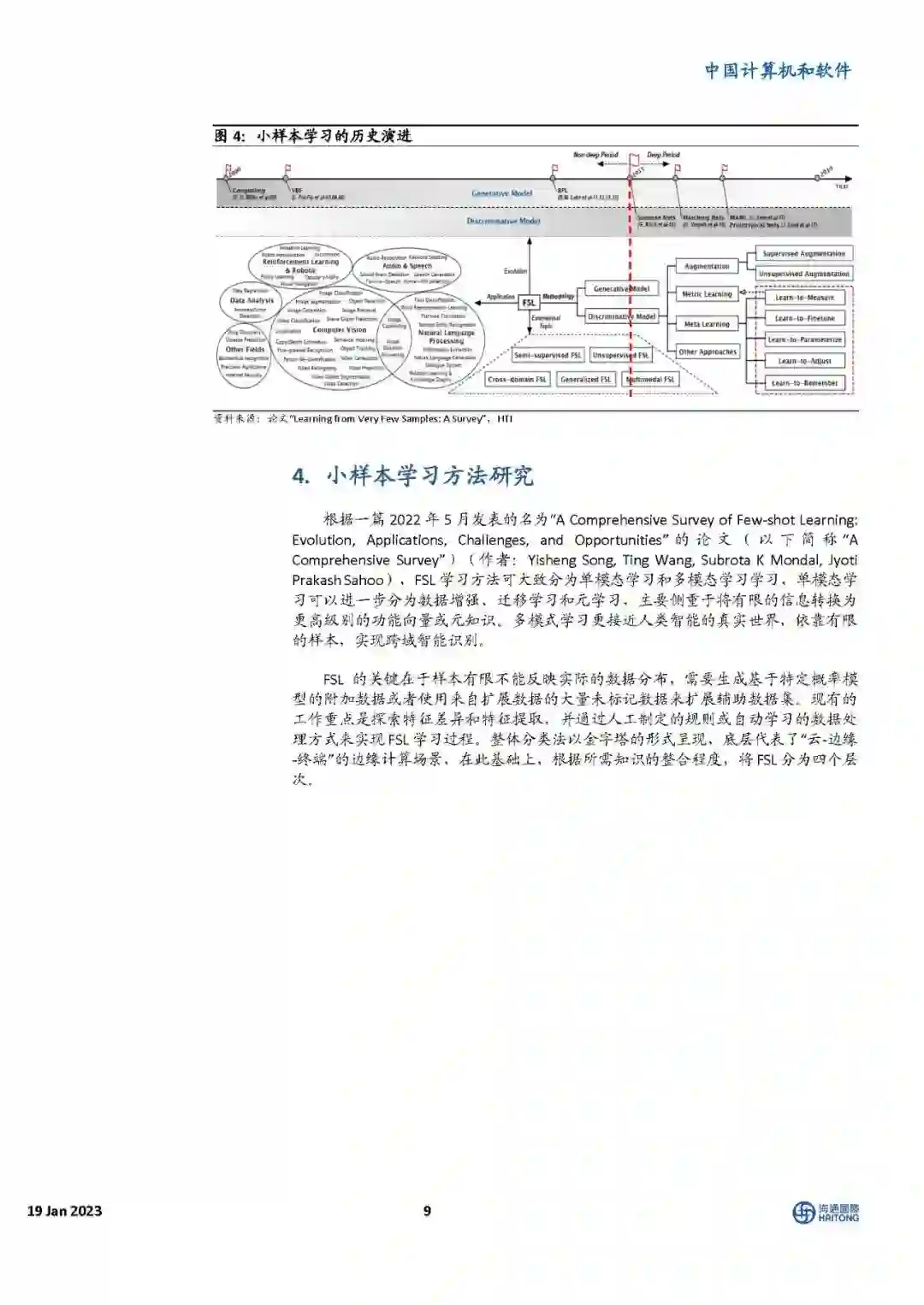 类人智能的小样本学习。如果用形象的比喻来说,深度学习(DL)是解决计算机“运筹帷幄”的问题(大量数据形成规律和抽象概念),而小样本学习是解决计算机“照猫画虎”的问题(少量数据形成决策)。深度学习更擅长分析规律和预测趋势,而小样本学习则具备举一反三的能力。小样本学习相当符合人类的思维推理模式,是实现类人人工智能的必由之路。 小样本研究领域的发展现状。2011年至2015年,由于小样本理论不完整,相关论文较少。自2015年以来,随着深度学习的兴起,小样本学习进入深度学习阶段,相关研究论文的数量呈线性大幅增长。国家间,在小样本学习研究领域的竞争也十分激烈,美国和中国是最大的两个研究产出国,而美国的私营部门在小样本学习的投入领先于其他国家。 小样本学习可以解决AI商业落地难题。2015年是小样本学习研究进展的分水岭,开始真正进入深度学习阶段,进而带动AI产业的实质性应用落地。小样本学习算法的性价比最优,不需要大量数据的标注准备,极大降低了数据标注、算力以及AI交付的工程化成本,对AI应用普惠化起到了至关重要的作用。 工业视觉检测是小样本学习的典型应用场景。小样本学习相关的任务中,计算机视觉是最活跃的研究领域,而AI视觉检测是小样本学习在工业领域的突出应用。