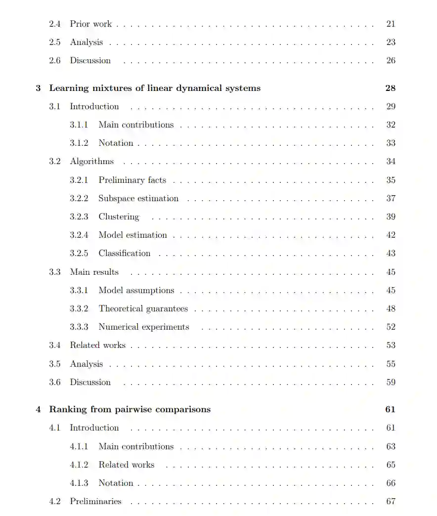 潜在变量模型假设某些潜在变量在观测数据中缺失,这种模型已经被长期研究,并在实践中找到了众多应用。使用潜在变量的机器学习不仅可以提高预测的准确性,而且在增强数据的可解释性以及发现数据背后的原理上起到了关键作用。本论文致力于为各种潜在变量模型的学习开发高效和可证明的算法。第一和第二个主题涉及使用无标签样本学习混合模型,这是一种对异质和复杂数据进行建模的强大技术。考虑了两种具体设置:(1) 低秩模型的混合,将低复杂性的结构先验整合到高维的混合线性回归中;(2) 线性动态系统的混合,由于时间序列数据之间的时间依赖性,模型估计尤为具有挑战性。对于这两个问题,我们设计了有原则的和模块化的算法,并正式导出了可靠模型估计所需的样本复杂度。此外,实证证据证实,我们的方法有潜力推广到更广泛的设置,超出我们的理论研究所涵盖的范围。第三个主题涉及根据边缘上的成对比较对一组项目进行排名,这些项目构成了一个连接图。我们关注经典的Bradley-Terry-Luce模型,该模型假设成对比较的噪声测量是基于项目的某些未知潜在分数生成的。在关注潜在得分估计的前提下,我们首先导出了在一般图形拓扑下最大似然估计的接近最优的逐项错误,这是通过观察统计估计和迭代优化算法之间的关联来证明的。此外,我们开始研究具有局部性的图形中的排名,这在实践中由于物理约束而出现;我们的贡献包括(1)确定局部性不受影响的条件,以及(2)设计新颖的分而治之算法,即使在最小的样本复杂度下也能保证达到接近最优的错误,同时享有某些计算优势。