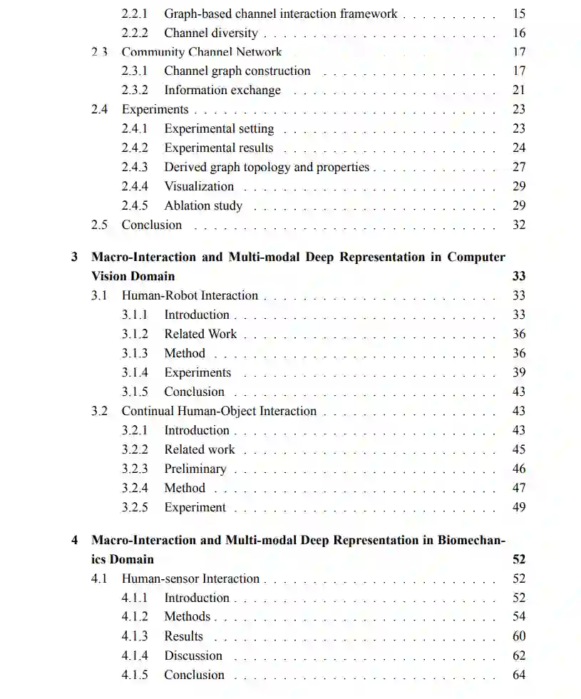 从方法论与建模角度出发,本文提出神经交互模型可借鉴生物神经网络的特性,并抽象为“小世界网络(small-world network)”模型。进一步探讨此类拓扑交互结构能否应用于人工神经网络与深度学习模型中。在此基础上,作者设计了 社区通道网络(Community Channel Network, CC-Net),将小世界网络结构嵌入到卷积神经网络(CNN)中,从而提升模型在表示学习中的效率与自适应能力。 本文还将这一研究理念扩展至多模态场景下的交互建模,涵盖宏观与微观两个层面: * 宏观交互 主要涉及人与外部环境的大尺度交互,常以显式的交互对呈现于真实场景中。研究包括: