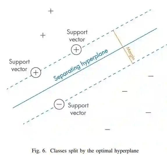 这种算法的目的是在N维空间中找到一个超平面,在保持最大余量的同时将数据点分开,也就是各个类的点之间的最大距离。