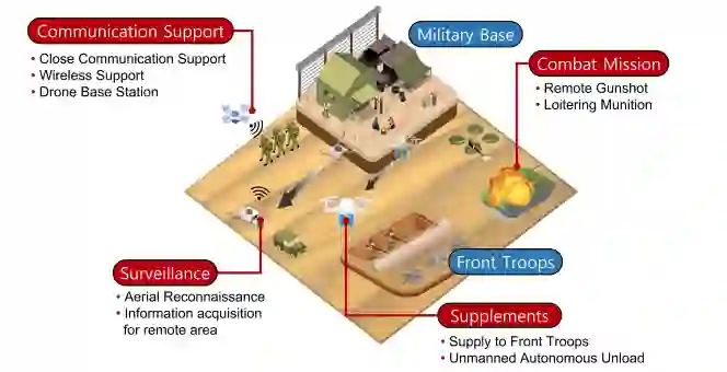 随着自主机动技术的快速发展,无人机目前广泛应用于包括军事领域在内的众多场景。尤其在战场条件下,由于需要实时且可调整的非线性轨迹规划,设计基于深度强化学习的自主控制算法面临重大挑战。为此,本文提出一种新颖的、面向物理信息游荡弹药应用的情境感知深度强化学习自主非线性无人机机动控制算法。所提出的基于深度强化学习的无人机机动控制算法,旨在实现实时情境感知操作,使其能够高效应对战场上的众多障碍物。为了有效观察并直观快速理解随时间变化的实时态势,本文提出了一种在基于Unity开发的物理信息虚拟战场环境中运行的算法。具体而言,提出的基于深度强化学习的非线性无人机机动控制算法,利用情境感知传感组件实现,该组件通过Unity虚拟场景中的射线投射功能实现。基于收集到的情境感知信息,无人机可在飞行中自主、非线性地调整其轨迹。因此,该方法显然有利于在复杂且不可预测的战场中规避障碍物。基于可视化的性能评估表明,所提算法优于其他机动控制算法,在障碍物密度为50%时,其平均性能接近其他算法的两倍。详细的轨迹规划进一步证明了其优越性。