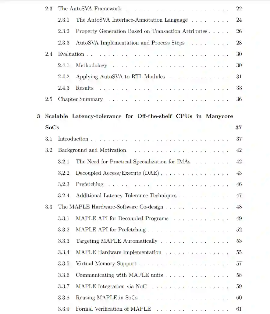 计算系统已经在现代世界中变得无处不在,但它们的设计远非“一刀切”。从电池供电设备到超级计算机,部署需求是计算机设计中异构性的重要驱动力。由于现代系统依赖并行性和专业化来实现其性能和功耗目标,新挑战也随之而来。随着硬件模块数量的增加,系统的复杂性也在增加,这使得正确和安全行为的验证变得更加复杂。此外,将并行化扩展到更多的处理单元(PUs)会增加对内存层次结构和处理单元间网络的压力,从而导致在处理具有间接内存访问(IMAs)的图状数据结构的应用程序时出现严重的瓶颈。这些挑战要求重新思考软件抽象和硬件设计,以实现可扩展和高效的系统,并引入强大的方法来确保其正确性。我的论文旨在通过三个主要方向来解决这些挑战。首先,为了便于硬件设计师将形式验证应用于他们的模块,本文引入了AutoSVA,这是一种从模块接口注释生成形式验证测试平台的工具流程。使用AutoSVA生成的测试平台已经在开源项目中发现了漏洞,包括一个广泛使用的RISC-V CPU。其次,为了在不增加验证复杂性的情况下缓解IMA延迟,本文介绍了MAPLE,这是一种支持数据流水线和预取的网络连接内存访问引擎,无需修改PU。因此,现成的PUs可以将IMAs卸载到MAPLE,并通过软件管理的队列消费数据。使用MAPLE可以有效地减轻内存延迟,提供比软件和硬件预取快2倍的速度提升。第三,为了进一步提高图和稀疏工作负载的可扩展性,本文共同设计了一个数据中心执行模型的扩展架构,Dalorex,在这个模型中,IMAs被分割成仅访问受限地址范围的任务,并在具有专用访问该内存范围的PU上执行。跨越一百万个PUs并行执行一个具有十亿条边的图的广度优先搜索,比Graph500的顶级条目快了近一个数量级的运行时间。通过引入新颖的硬件设计、执行模型和验证工具,本论文为解决日益增长的对高性能、能效和成本效益计算系统的需求所带来的挑战作出了贡献。