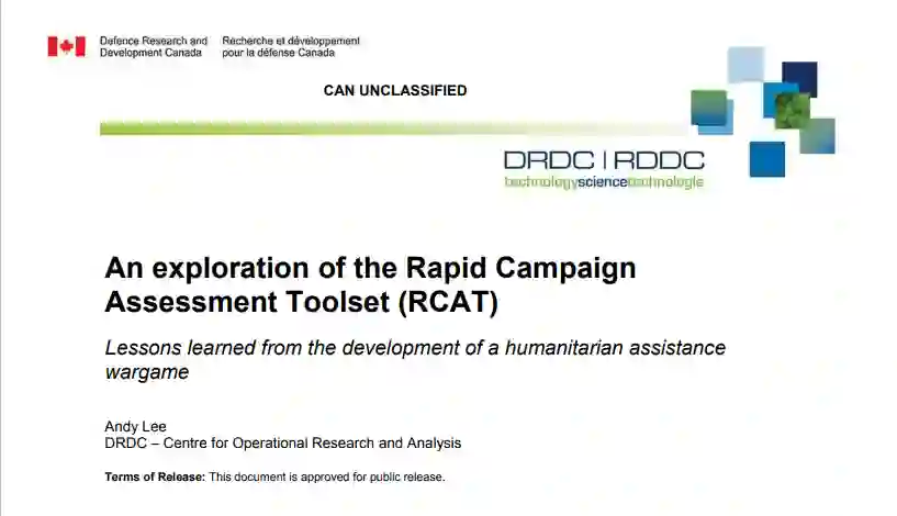 本文将讨论在探索RCAT过程中获得的经验教训,然后将讨论RCAT的潜在用途,以支持作战研究和分析中心(CORA)的兵棋推演工作。