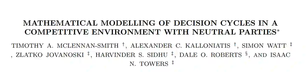 决策是人类的一个过程,是竞争的一个基本组成部分。作为决策的实现,指挥与控制,或C2,已经在文献中对对抗性种群进行了研究,然而这些模型并没有明确地捕捉到竞争。我们在这里的工作旨在丰富这种竞争模型,通过与非线性振荡器系统(Kuramoto方程)的耦合,将生态学上的种群模型扩展到决策动态中,以模拟决策中的行动-感知循环。通过日益复杂的不对称竞争模型,我们强调了竞争的敏捷性和决策过程对种群成功的重要性。