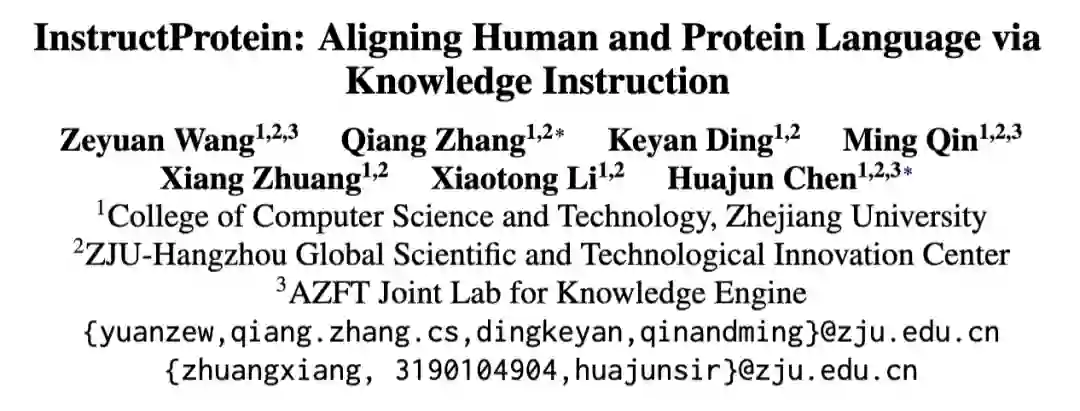 **论文题目:**InstructProtein: Aligning Human and Protein Language via Knowledge Instruction **本文作者:**王泽元(浙江大学)、张强(浙江大学)、丁科炎(浙江大学)、秦铭(浙江大学)、庄祥(浙江大学)、李晓彤(浙江大学)、陈华钧(浙江大学) **发表会议:**ACL 2024 **论文链接:**https://arxiv.org/abs/2310.03269 ****代码链接:https://github.com/HICAI-ZJU/InstructProtein 欢迎转载,转载请注明出处