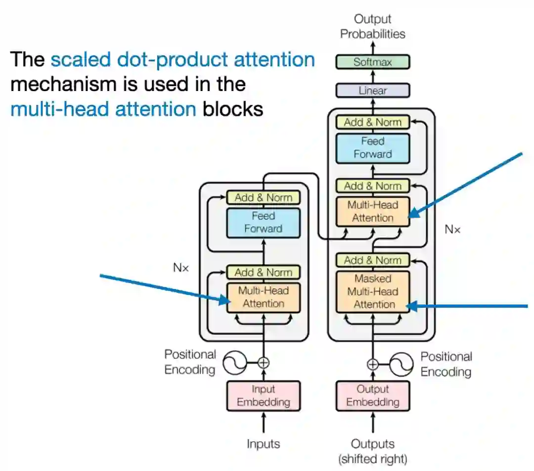 请注意,自注意力有很多变体。人们研究的一个重点是如何提高自注意力的效率。然而,大多数论文依然是实现《Attention Is All You Need》论文中提出的原始的缩放点积注意力机制(scaled-dot product attention mechanism),因为对于大多数训练大规模 Transformer 的公司来说,自注意力很少成为计算瓶颈。