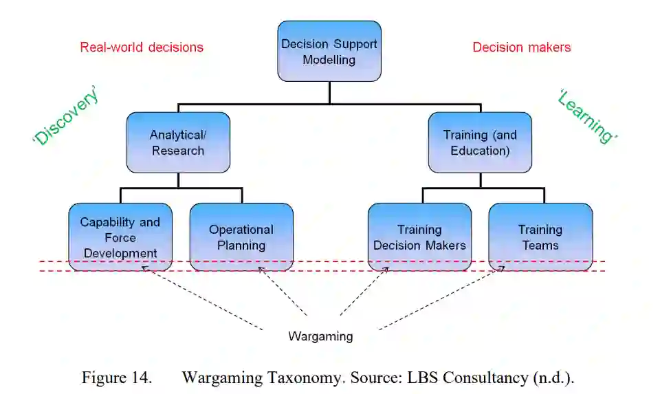 本报告首先对与WRAID能力相关的主题进行文献回顾。文献回顾从人工智能的回顾开始,提供了一个关于人工智能如何工作以及它能够完成什么类型任务的概述。文献综述探讨了人机协作的方法,以支持未来指挥官和人类用户与WRAID系统之间的互动。需要翻译指挥官的意图,并让WRAID将有意义的输出传达给指挥官,这需要一个强大的界面。审查包括传统的兵棋推演,以研究目前的模拟兵棋推演是如何进行的,以便深入了解,未来的WRAID能力如何能够实时复制兵棋推演的各个方面,并认为以前的兵棋推演可以为人工智能和机器学习(ML)算法的发展提供训练数据。ML算法的训练需要大量的代表性数据。文献回顾研究了人类的认知负荷,以深入了解人类大脑的认知技能和上限;并确定人类思维的极限,以显示人工智能可能提供的支持。文献综述中涉及的最后一个主题是,传统的计划和决策,以了解目前在军事上如何制定战术行动方案。