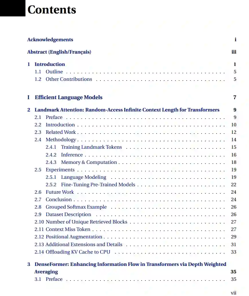 在论文的第一部分,我们提出了三种对Transformer模型的增强,以应对处理长序列、提升数据效率和优化推理成本等关键挑战。首先,我们提出了Landmark Attention机制,以提升处理长序列的效率,在我们的实验中,该方法将推理成本显著降低了一个大常数因子(达50倍)。通过在注意力机制中引入层级结构,Landmark Attention 能够在推理阶段处理任意长度的输入,而不受训练时序列长度的限制。接着,我们提出了DenseFormer架构,它允许后续层访问前面所有层的输出。得益于增强的信息流,DenseFormer 在保持与更深Transformer模型相同困惑度(perplexity)的同时,在内存效率和推理速度方面均优于基线模型。我们的实验还揭示了信息流中意料之外的连贯模式,显示出远层激活被结构化重用的现象。最后,我们提出了CoTFormer以提升推理效率,其灵感来自大型语言模型中逐步推理的涌现能力。CoTFormer 通过对一个浅层模型的重复应用,实现了与更深模型相当的准确率。该方法虽然引入了额外计算开销,但支持按token粒度灵活调整推理成本。我们的结果表明,在训练自适应CoTFormer时,能在不损失精度的前提下,显著减少计算成本,因其能自动将计算资源分配给最需要的token。